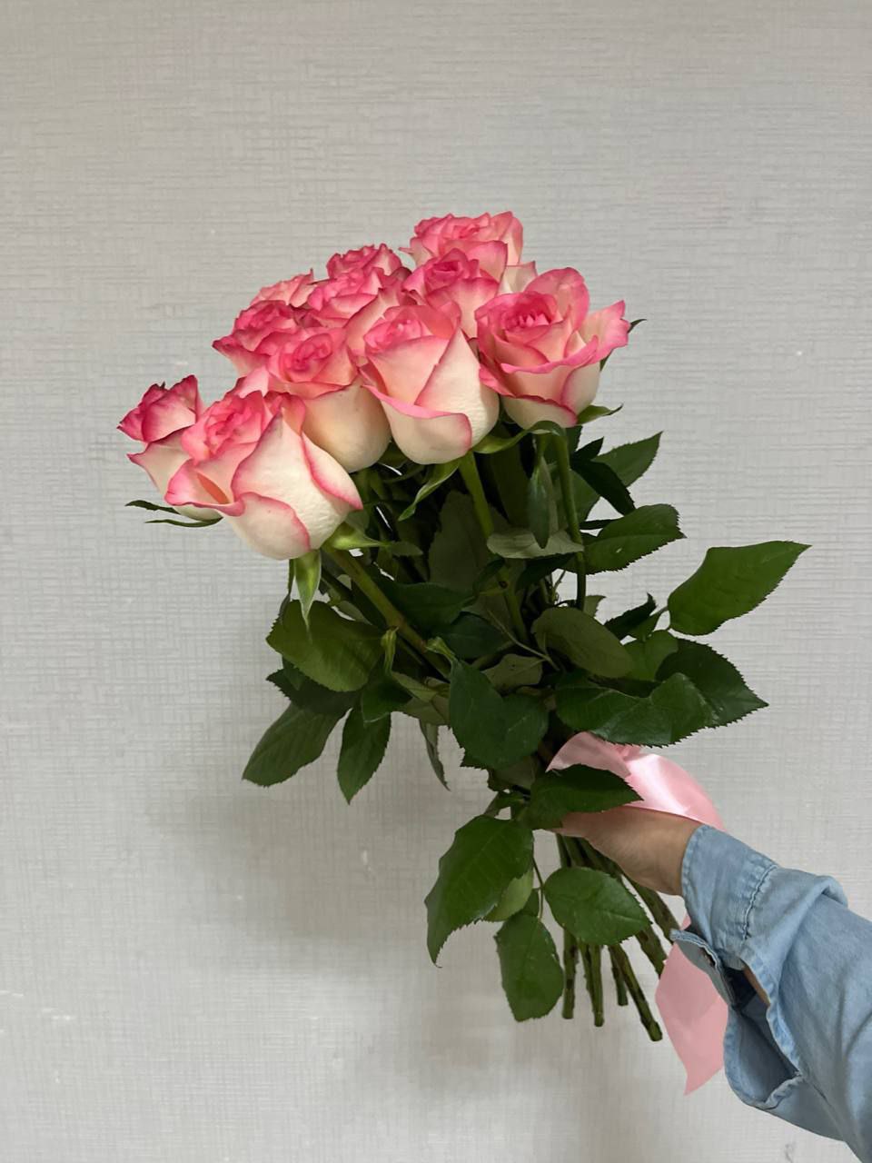 Букет из 11 розовых роз “Фуксия” с лентой
