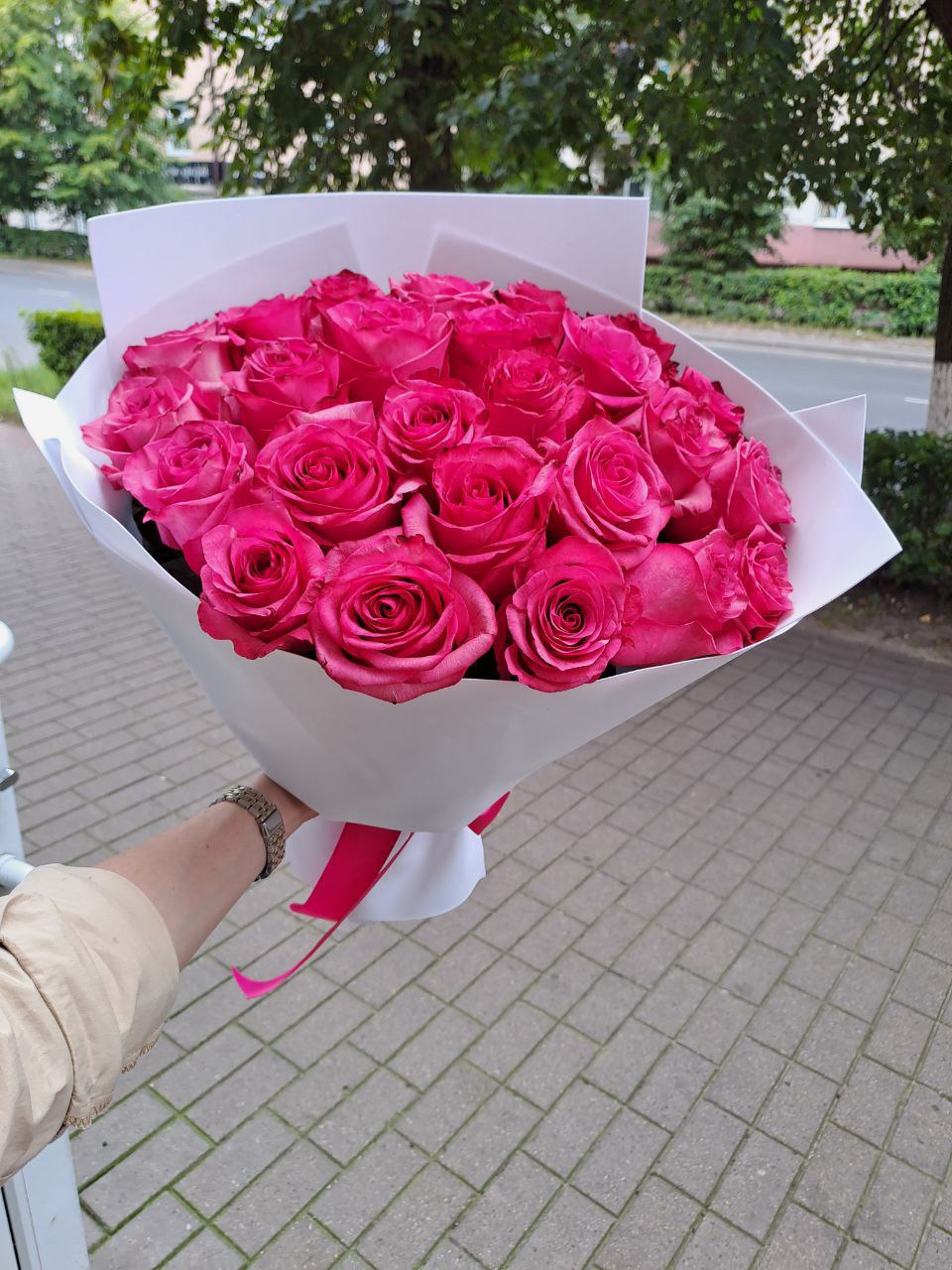 Обращаем внимание, что товар обмену и возврату не подлежит.Схожесть букета 80%, в зависимости от наличия цветов и упаковки. У нас только свежие цветы.