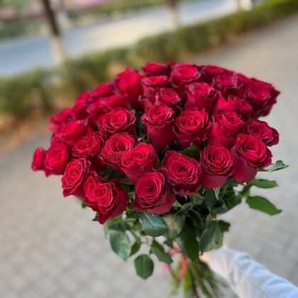 Букет из 51 красной розы “Шампань” с оформлением