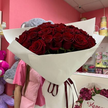 Букет из 51 розовой розы “Ферари” с оформлением