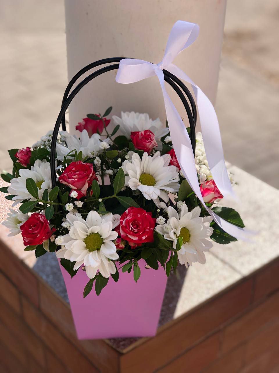 Цветочная композиция в коробке – это вариант подарка для тех, кто привык не только к красоте и благоуханию цветов, но и к удобству. Ей не требуется ваза – внутри сумки находится специальная губка, пропитанная водой, в которую вставлены цветы.