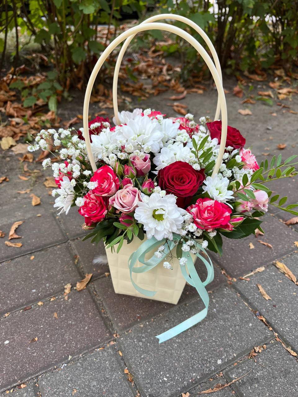 Обратите внимание: цветочные композиции всегда имеют уникальный состав. На сайте вы видите фотографии примерного состава и цветовой гаммы композиций.