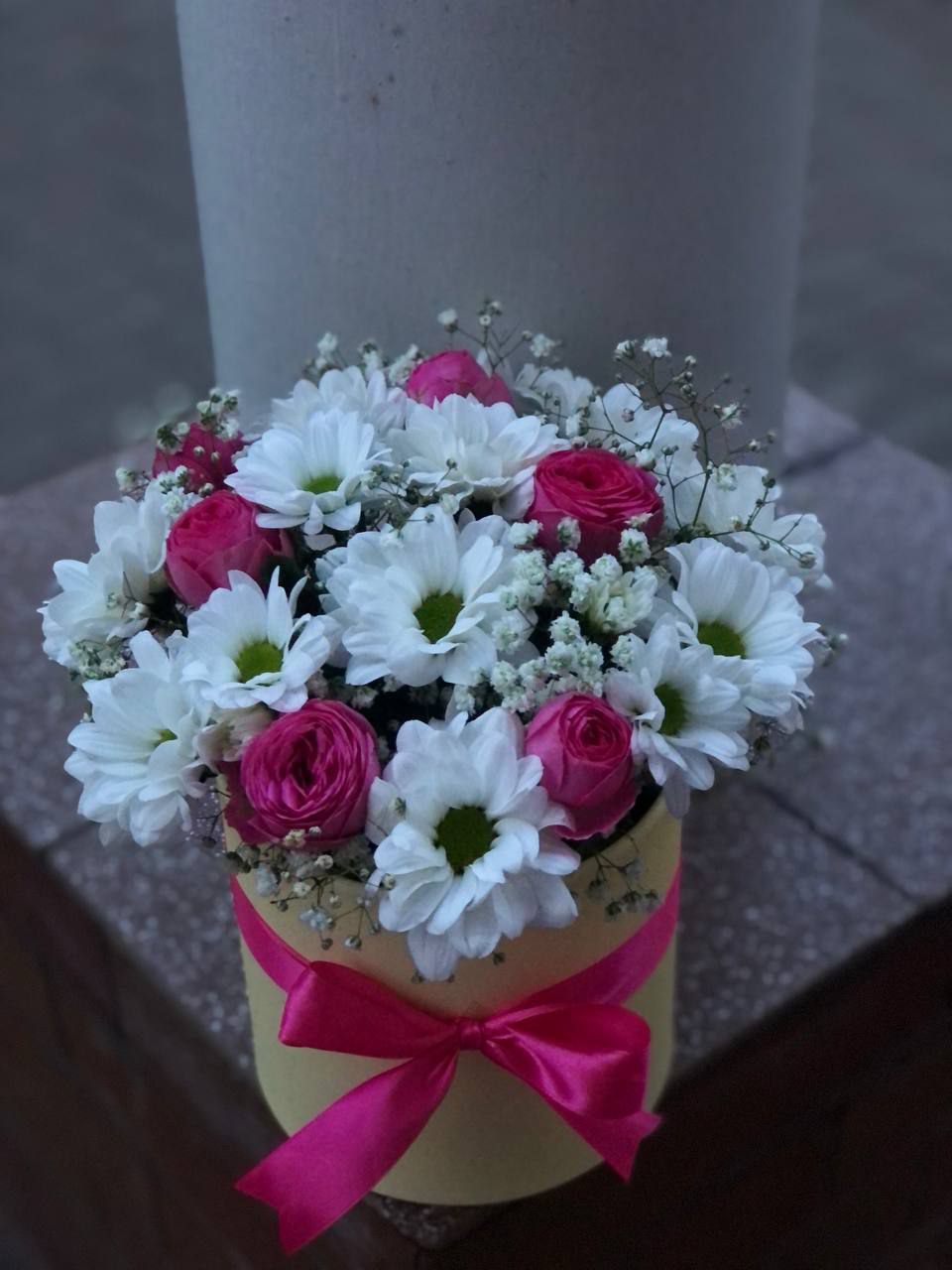 Обратите внимание: цветочные композиции всегда имеют уникальный состав. На сайте вы видите фотографии примерного состава и цветовой гаммы композиций.