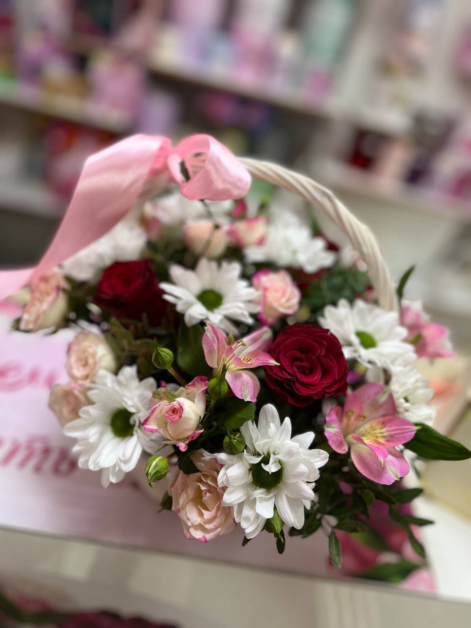 Корзина с цветами “Маршмеллоу”